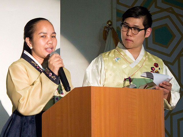KCC interns May Jornales and Choo Seun-Keuk open the show in English and Korean.