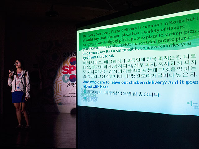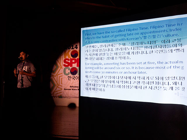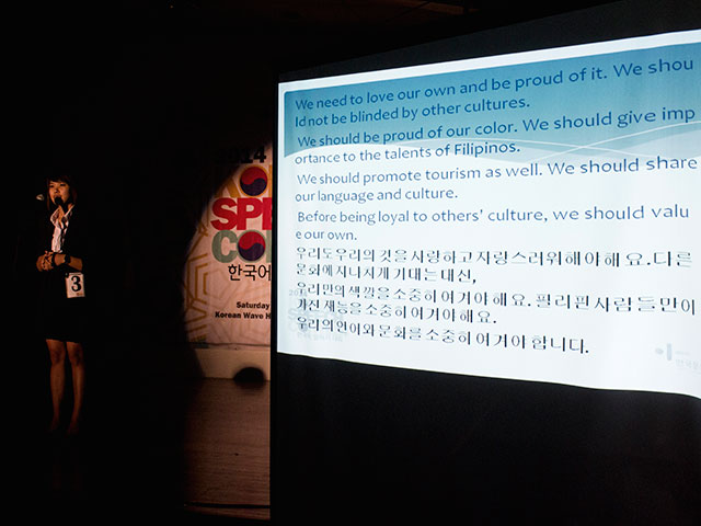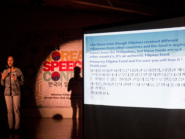 The contestants were asked to choose from four topics to talk about. Jezreel Gibaga describes how Hallyuwave sparked her interest in Korea.
