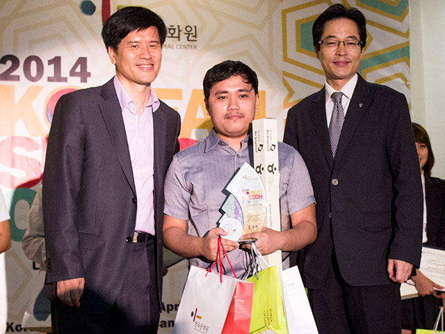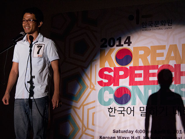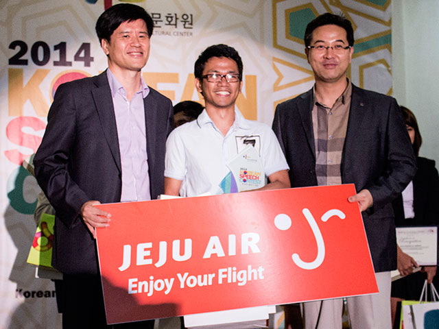 Grand prize winner Marco Angulo describes the common misconceptions Koreans have about Filipinos in his speech, “What Philippines?”
