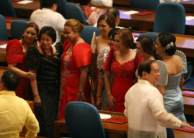 Pangasinan Rep. Rosemarie “Baby” Arenas is vivid in a bright red terno